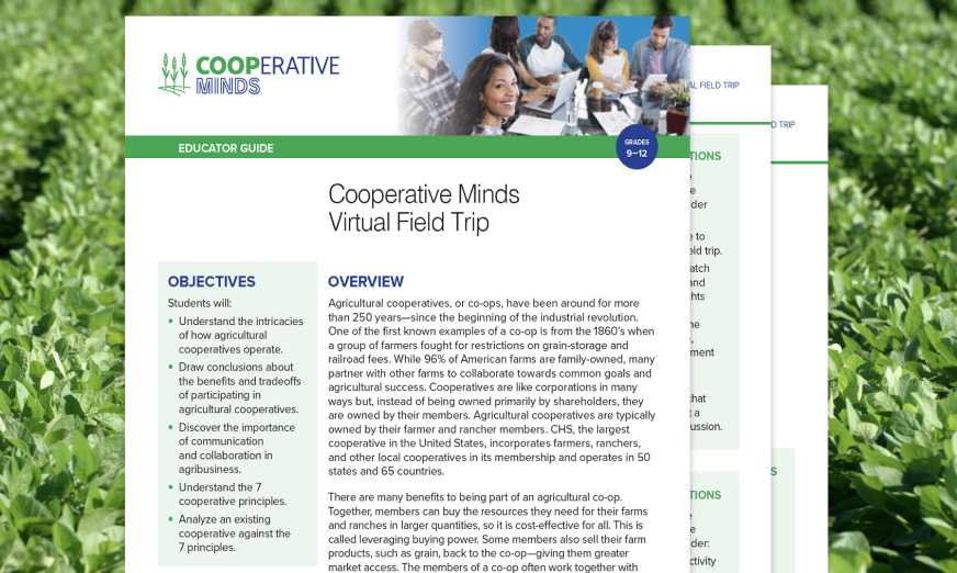 Empower students to start cultivating their own success by introducing them to the abundant potential of the agricultural co-op business model. Discover the diverse array of careers that intersect to help ensure the foods and products we depend on get to our communities and across the globe every day.